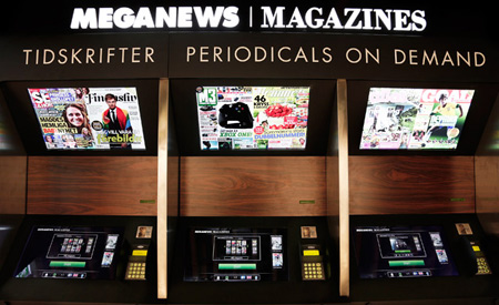 Uma novidade na tentativa de minimizar o problema está em Estolcomo, na Suécia. Trata-se da Meganews Magazine, uma banca que imprime a publicação após a venda, segundo o site Springwise. No local, há painéis exibindo as capas das revistas ou jornais e, usando telas touch screen, o leitor pode folhear o material digital e solicitar a impressão – em dois minutos o consumidor leva o produto desejado.